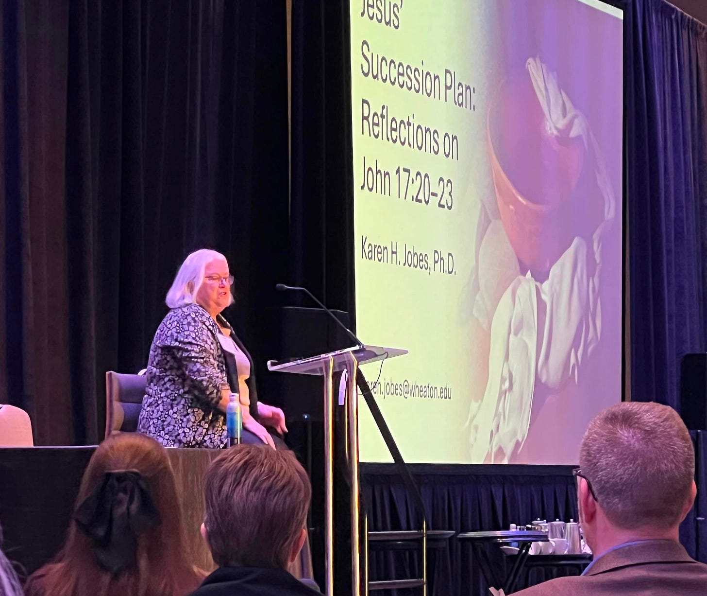Jobes chose “Jesus’s Succession Plan: Reflections on John 17:20–23” as the topic of her presidential address. And Cohick lavished praise on Jobes for her courage in doing so. The speech, she said, was “what I expect to happen at those presidential lectures where there's excellent scholarship but also an engagement with the moment where we are.”