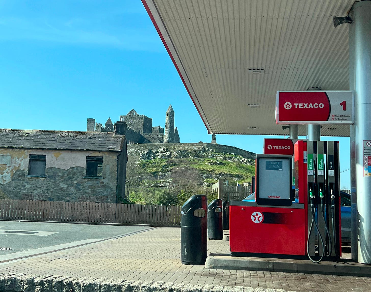 The Irish have made an art of making peace between past and present. One of my favorite photos was snapped hurriedly as we drove through the town of Cashel. Immediately in front of me is a Texaco gas station, but caught in the background is the Rock of Cashel, the thousand-year-old castle high on a hill overlooking the region where Brian Boru himself, the high king of Ireland, reigned.